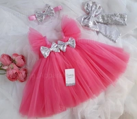 Silver Sequins Bow Dark Peach Partywear Dress