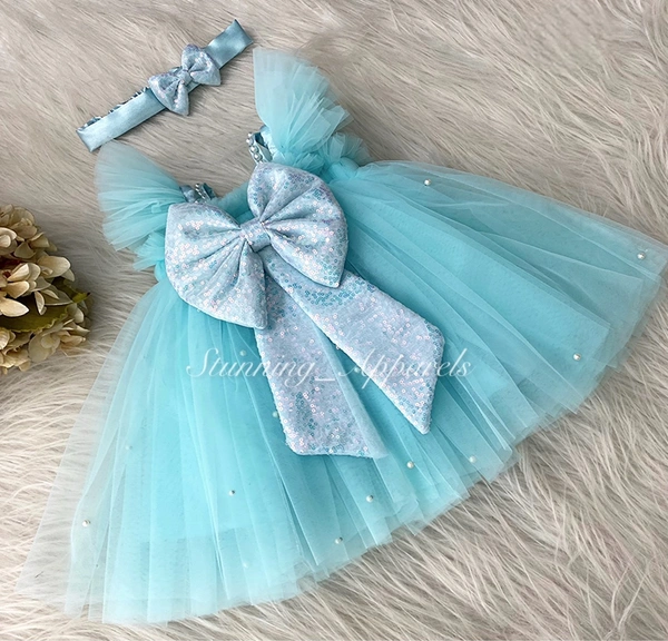 Sky Blue Sequins Bow Sky Blye Umbrella Dress