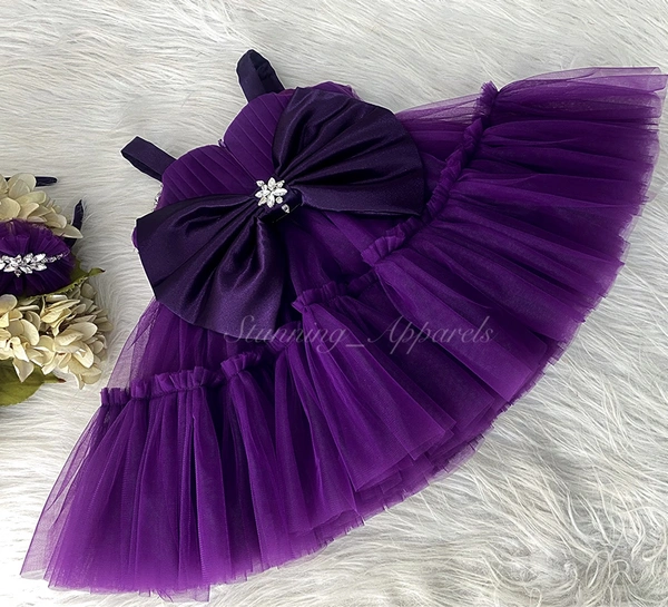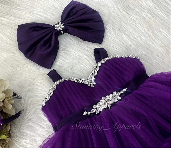 Stone And Daimond Worf Ruffled Purple Dress