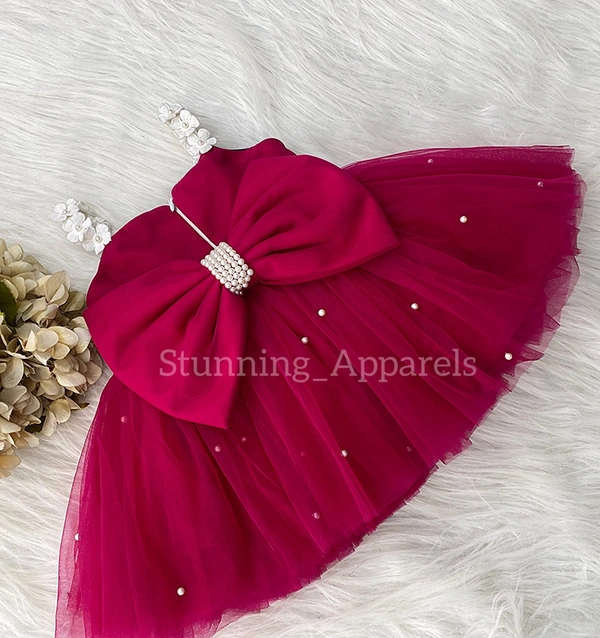 Strapped Flower Work Cute Dark Magenta Dress