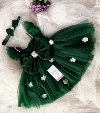Strapped White Flower Partywear Dark Green Frock