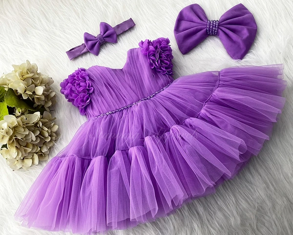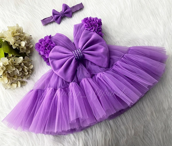 Stylish Cape Sleeves Flower Work Partywear Lavender Frock