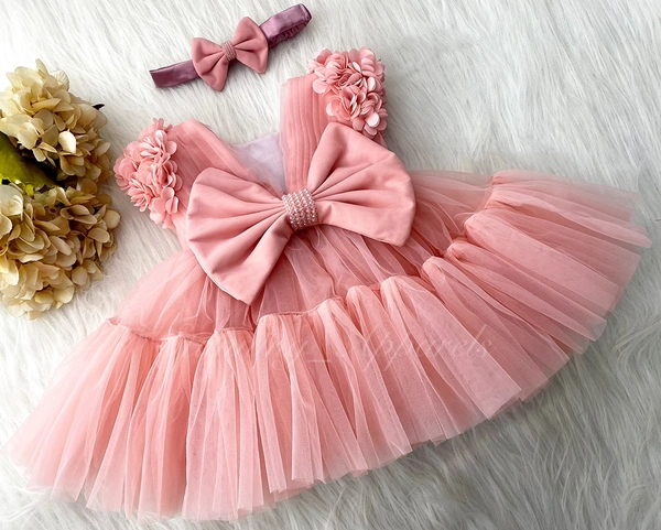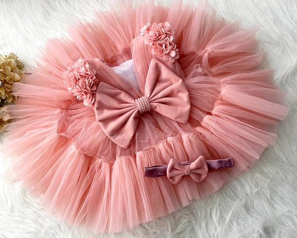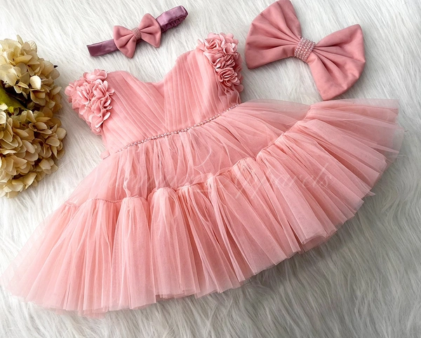 Stylish Cape Sleeves Flower Work Partywear Peach Frock