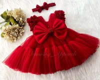 Stylish Cape Sleeves Flower Work Partywear Red Frock