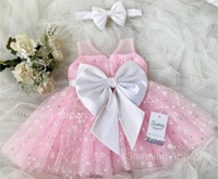 Stylish White Satin Bow Partywear Baby Pink Dress