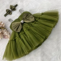 Sweetheart Hand Work Partywear Designer Olive Green Frock