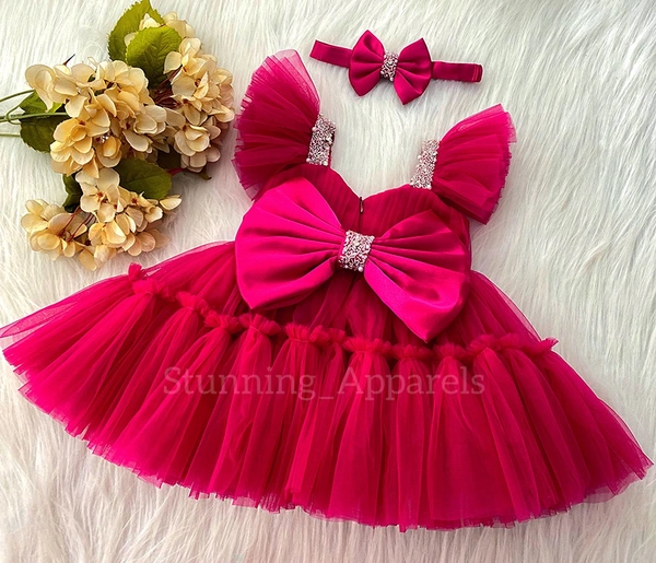 Sweetheart Neckline Hand Wirk Ruffled Sleeves Magenta Pink Dress