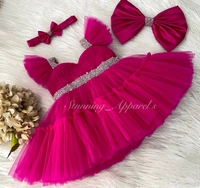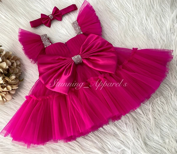 Sweetheart Neckline Hand Wirk Ruffled Sleeves Magenta Pink Dress