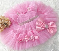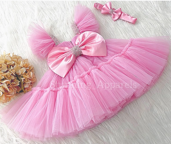 Sweetheart Neckline Hand Work Ruffled Sleeves Dark Baby Pink Dress