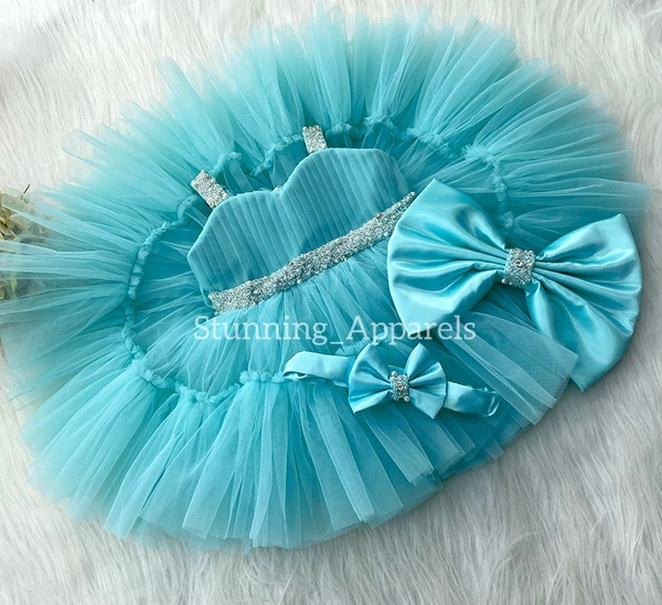 Sweetheart Neckline Hand Work Strapped Sky Blue Dress