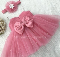 Waistline Flower Work Peach Dress