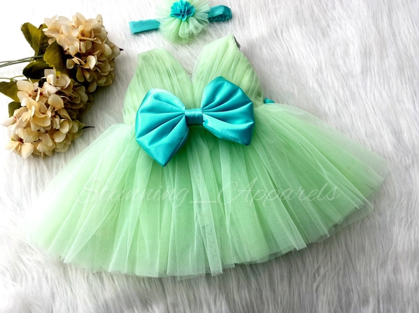 Waistline Sky Blue Flower Work Partywear Pista Green Frock