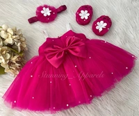 Waistline White Flower Work Magenta Pink Dress