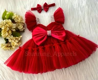 Sweetheart Neckline Hand Work Ruffled Sleeves Red Red