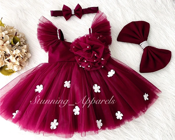 White Flower Work Ruby Red Dress