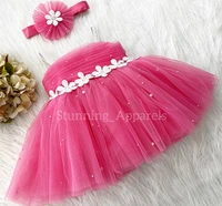 White Flower Work Strapped Flemingo Pink Dress