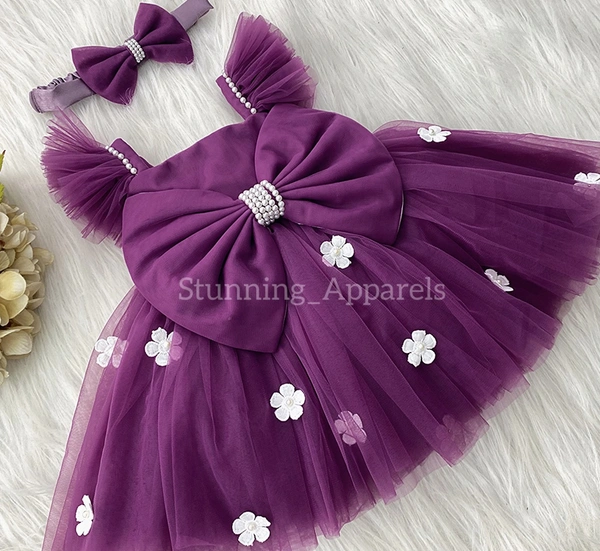 White Flower Straped Ruffled Deep Orchid Dress