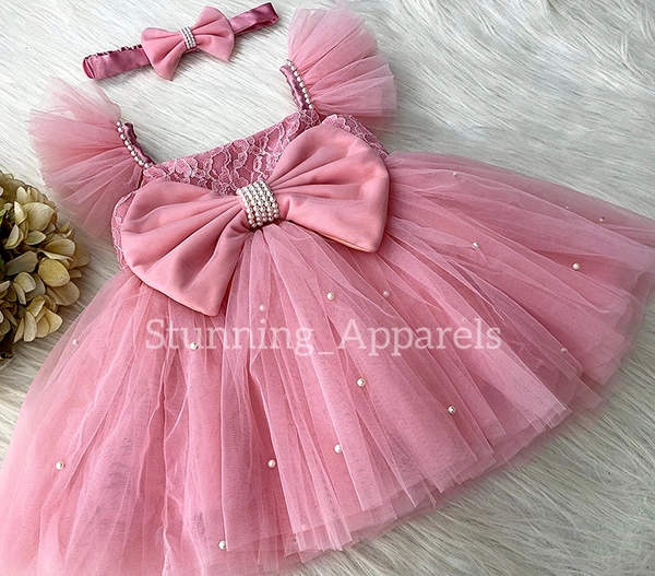 White Pearls Work Strapped Sleeves Peach Dress