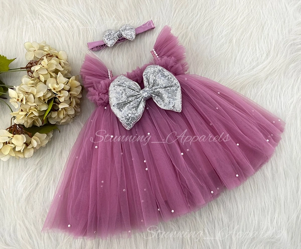 White Pearls Work Umbrella Dusty Pink Frock